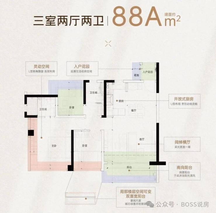 88㎡户型:7米超长阳台+12㎡餐厨一体化,满足家庭欢聚场景