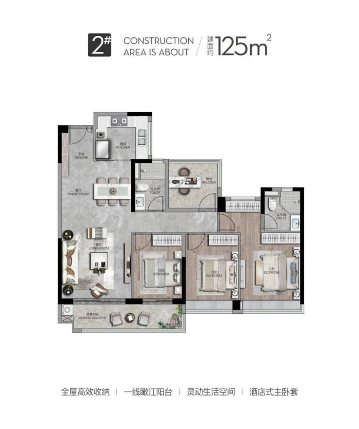 ▲建面约125㎡