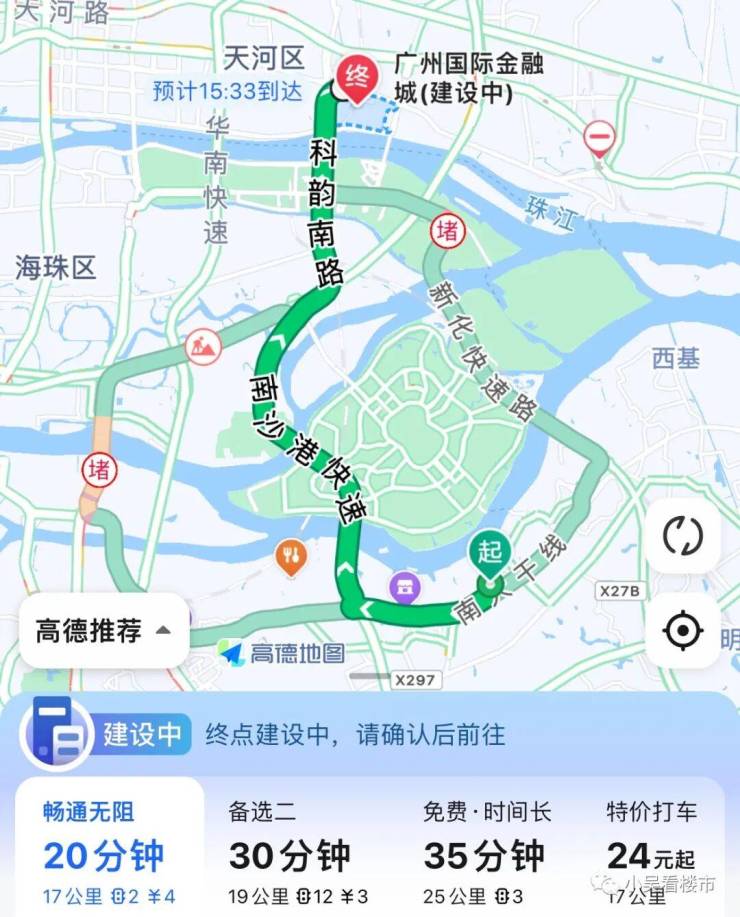 自驾去金融城:南大干线转南沙港快速,去往金融城17公里,高速费4元,全程耗时20分钟左右。