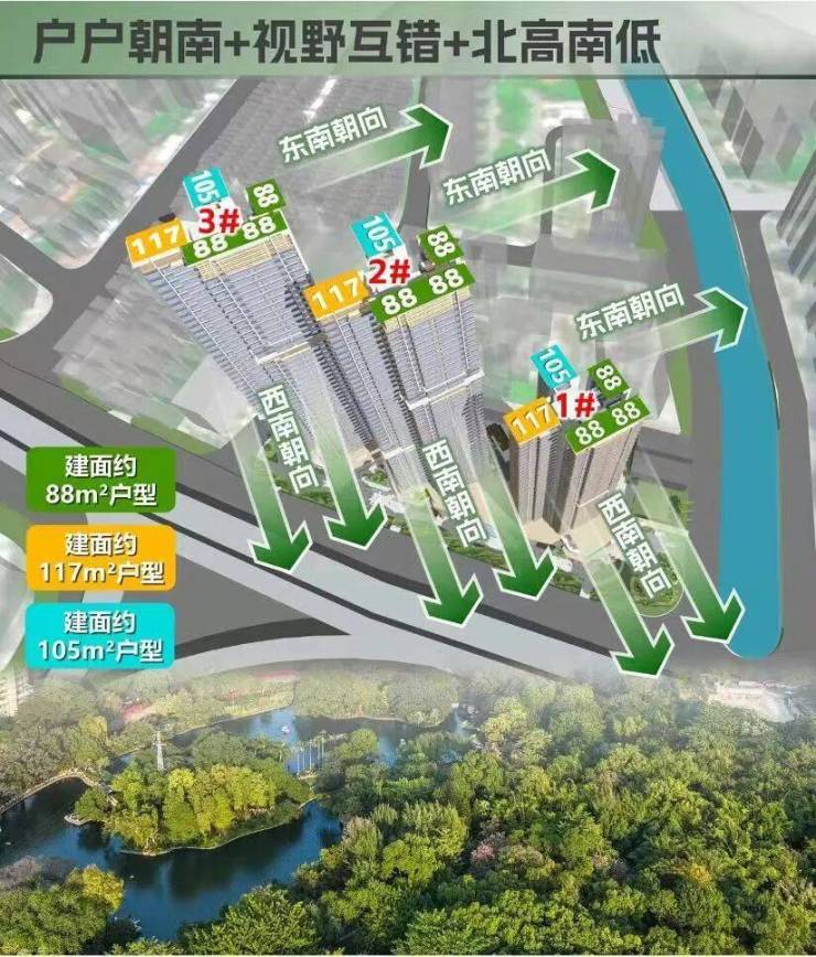 产品户型使用率,也将超是海珠目前全部在售新盘中最高的,而且布局大体上由北至南“一字型”排开,全部户型都是东南或西南朝向