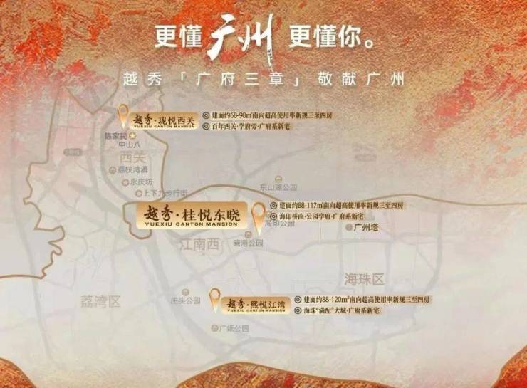 作为“广府系”第三子,越秀桂悦东晓在地段、景观和产品上,都具有很鲜明的本土特色。
