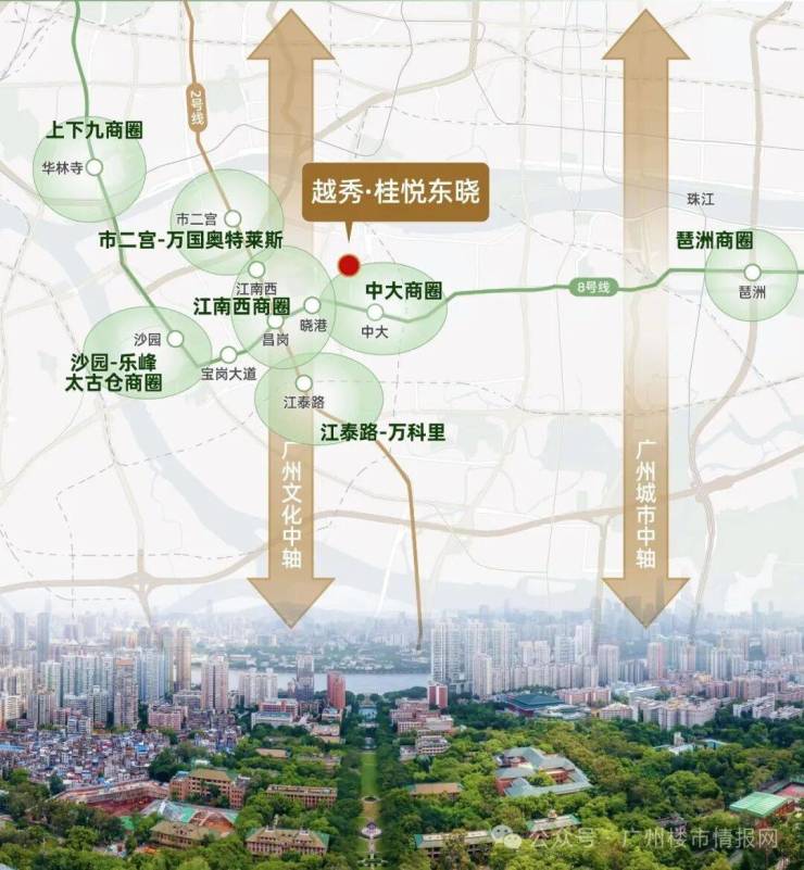 交通配套:距离地铁8号线晓港地铁站仅0.6km,8号线可以直达琶洲、客村等商务圈,一站到昌岗可以换乘2号线,到南站、白云新城也比较方便,三站客村换乘3号线,到珠江新城、体育西路,能实现40min内通勤。