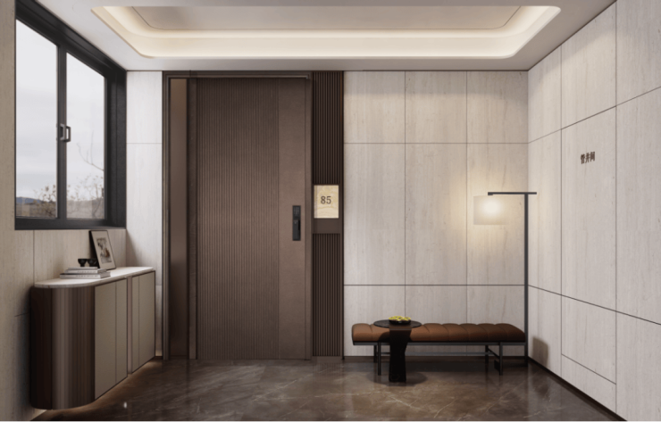 另一方面审美与配置迭代,独立电梯厅+人性化交付配置直击客户需求痛点