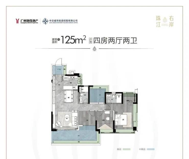 最小的建面约125平四房两卫,设计上也是颇花心思。