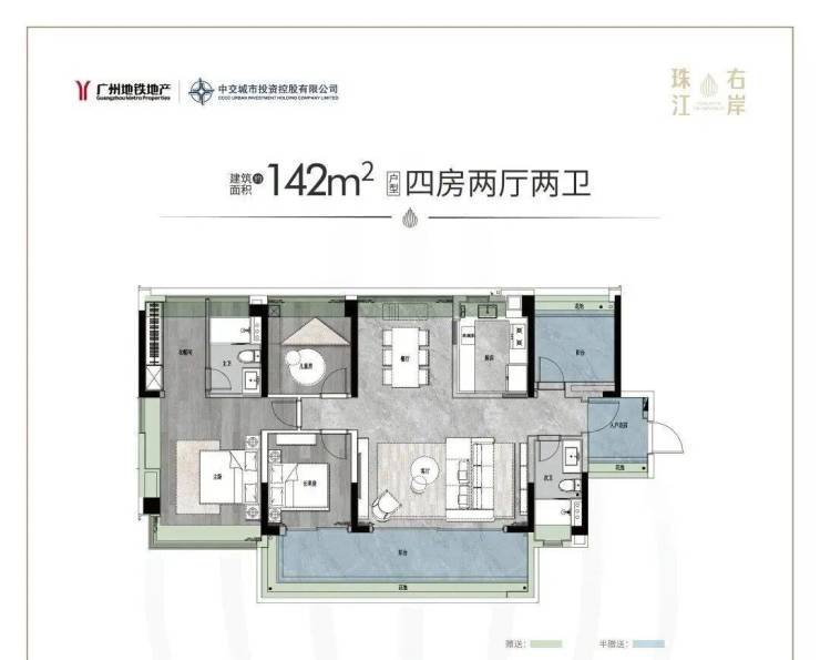 户型面积:建面约125-142㎡四房两厅两卫/214-319㎡大平层
