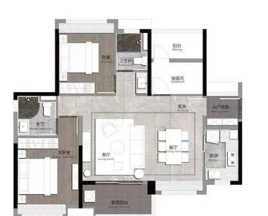 102㎡稀缺巨幕景观户型(三房两厅两卫)
