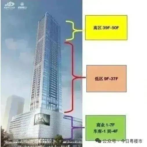 项目总高194米,共1栋,分为顶高低三个区域,低区9-38层4梯8户,面积为88-95-115-125㎡;高区39-48层4梯6户,面积为88-115-226㎡;顶层49-50层4梯4户,面积为216-226㎡ 其中88平目前已售罄。