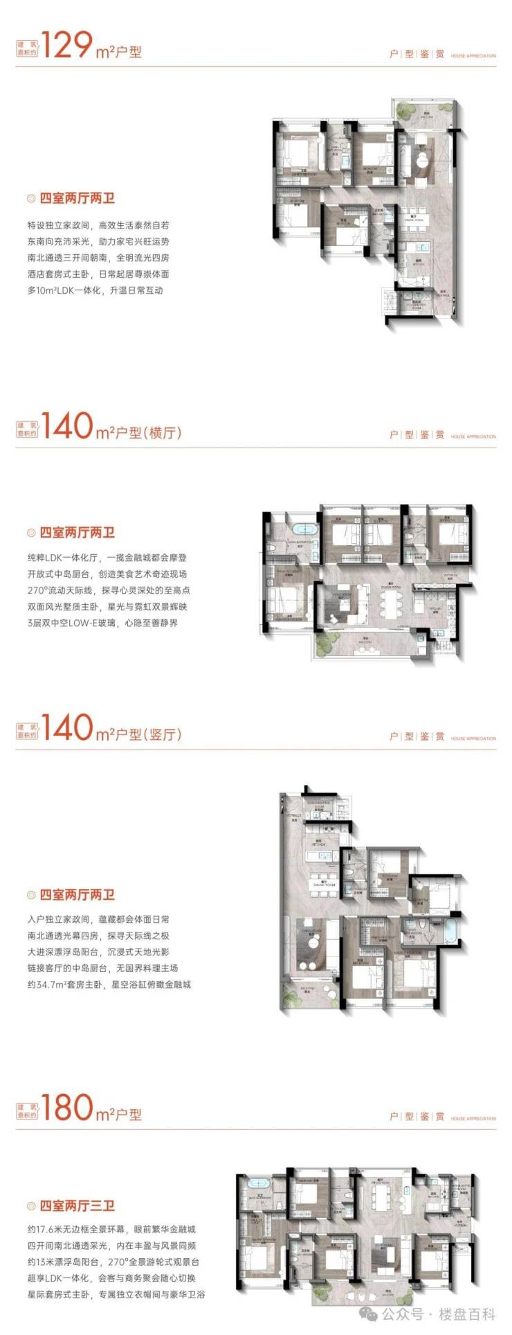 户型面积:129-180㎡四房