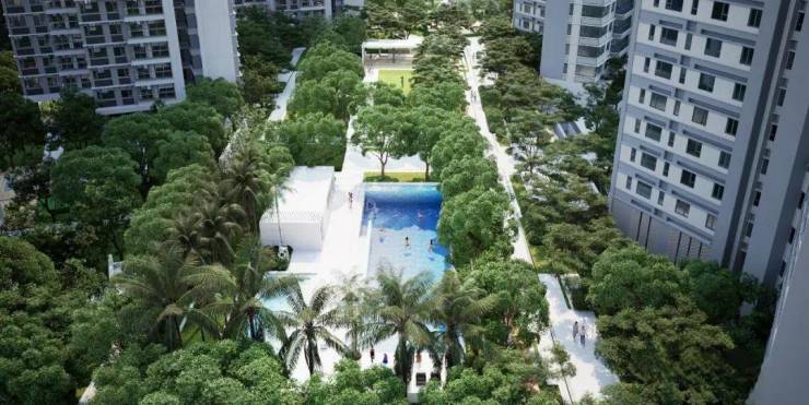 项目三面环山,约1.5公里的片区范围内抬眼全是山色连绵,很难想象,在人口稠密的广州城中心,还能有机会闹中取静,从紧绷的工作中抽身,感受肆意增长的绿植。