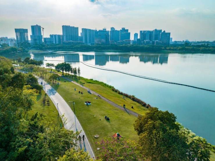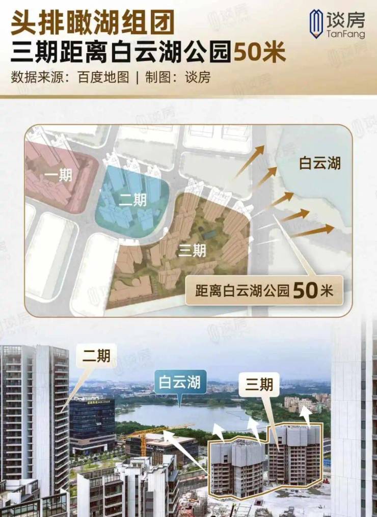 项目距离白云湖直线距离仅50米,约3000亩水体面积,是广州城央最大的人工湖,近10公里的绿茵跑道,业主都可以无缝享受,在家里就可以眺望白云湖的湖光风景。