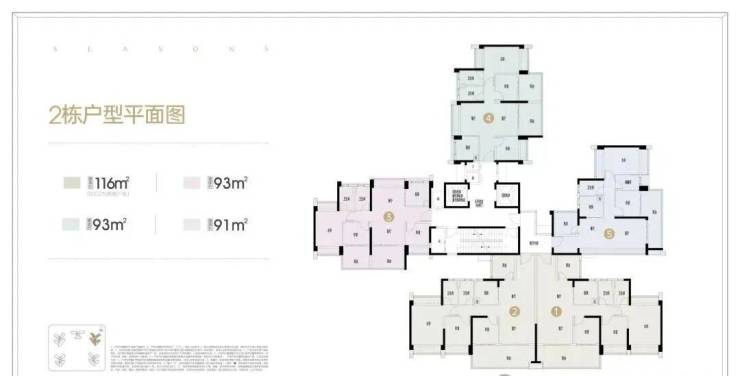项目主推91-141㎡三至五房,全南向设计,主打高使用率,使用率最高能达到118%,141平户型能直接做到5房,而且是双主套设计。