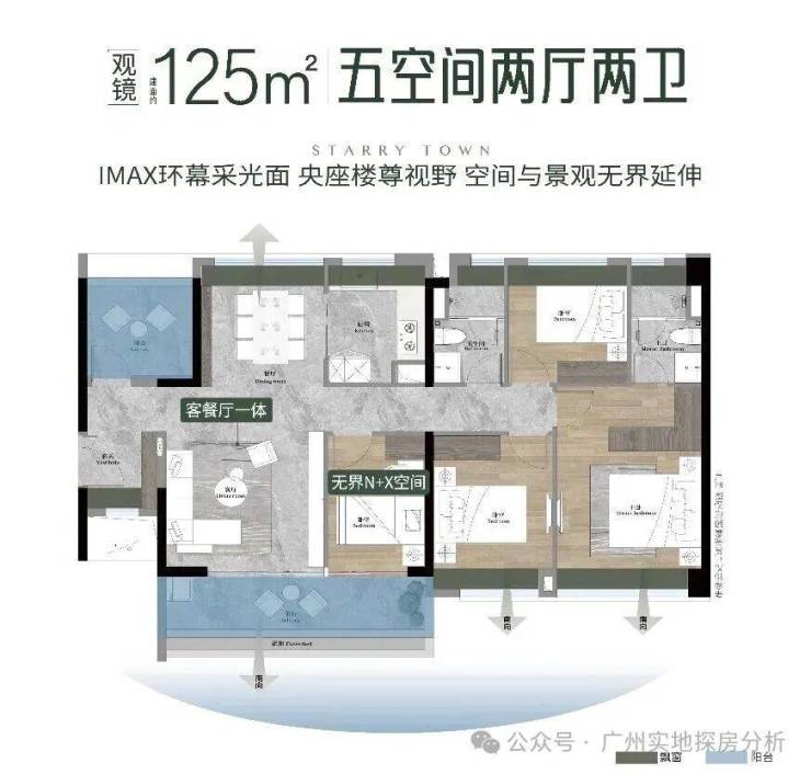 【125㎡ 5空间2厅2卫】4.5开间朝南,客餐厅南北对流