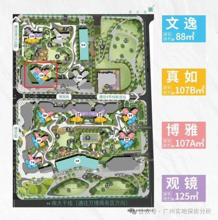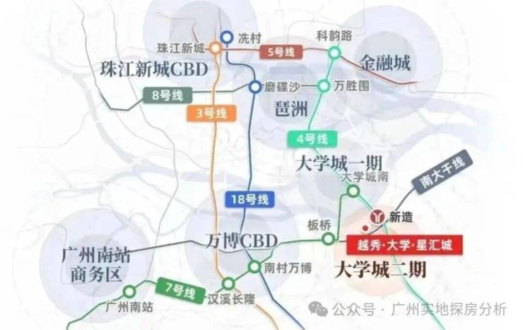 项目交通配套:目前距离地铁4号线新造站约为1.6公里,东门连接广医南路距离地铁站可以控制在800米左右。乘坐4号线1站可达大学城、3站万博、4站琶洲、5站金融城有楼巴接驳到地铁,自驾通过南大干线可快速通达万博、琶洲、大学城等区域,通勤效率高。