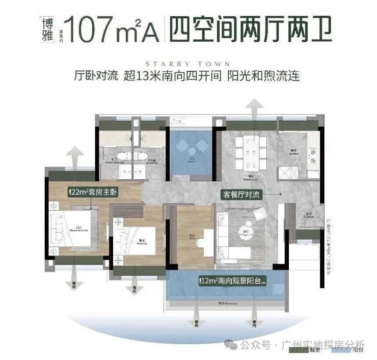 【107㎡A4空间2厅2卫】4.5开间朝南,客厅主卧双南北对流