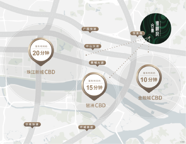 世界级交通枢纽,临江大道直达珠城:10分钟珠江新城,15分钟琶洲,金融城TOD(全国最大地下空间),15分钟南站,20分钟白云机场。
