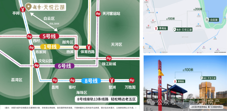 项目距离8号线亭岗站仅200米,8号线串起老荔湾、海珠西、客村、琶洲,是换乘之王,现状有8个换乘站,可以换乘多条地铁线,比如1-2-3号线以及广佛线