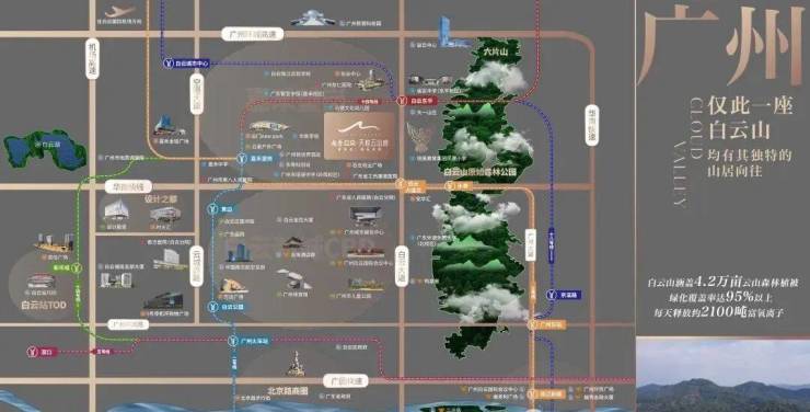 项目位于白云新城北部,临近白云大道,楼盘背面120米就是白云山,而且三面无遮挡,在家推开窗户就是白云山景观