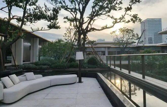项目创新打造的约2500㎡立体下沉式会所已实景呈现,半开敞式空间将自然光引入私宴厅、健身房等功能空间,悬浮结构设计使其与周边景观浑然一体。