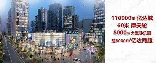 社区自带1万²临街商业街,11万m²亿达城一路之隔,万达影城、亿达商超、肯德基、麦当劳已进驻,白云北唯一60m摩天轮,聚集广州北部人流,将成为未来最浓厚商业氛围的区域。