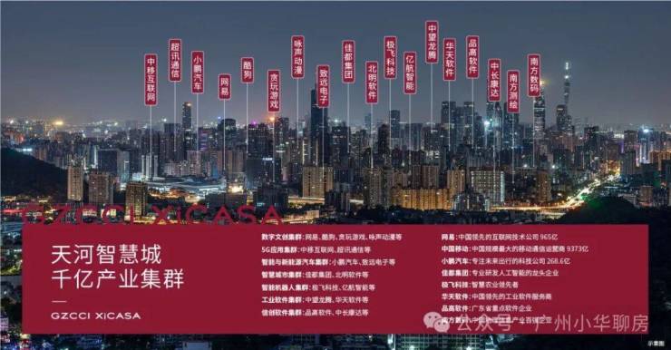 天河智慧城汇聚中国移动、网易、酷狗、小鹏汽车等3000多家科技企业、1000多家高新技术企业,构建八大产业集群,2023年总收入达3226亿元,引进20多万技术人才,“广州硅谷”孕育而生,成为湾区科创精英宜居宜业之地。