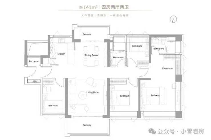 还有 141㎡四房,主卧带独立卫生间和衣帽间,适合家里人多的情况。