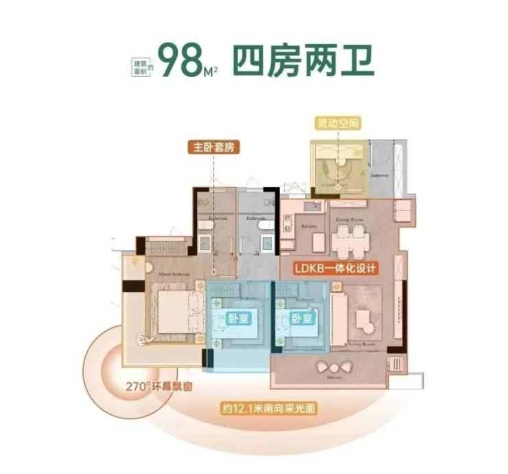 建面98平户型,是88平放大升级版