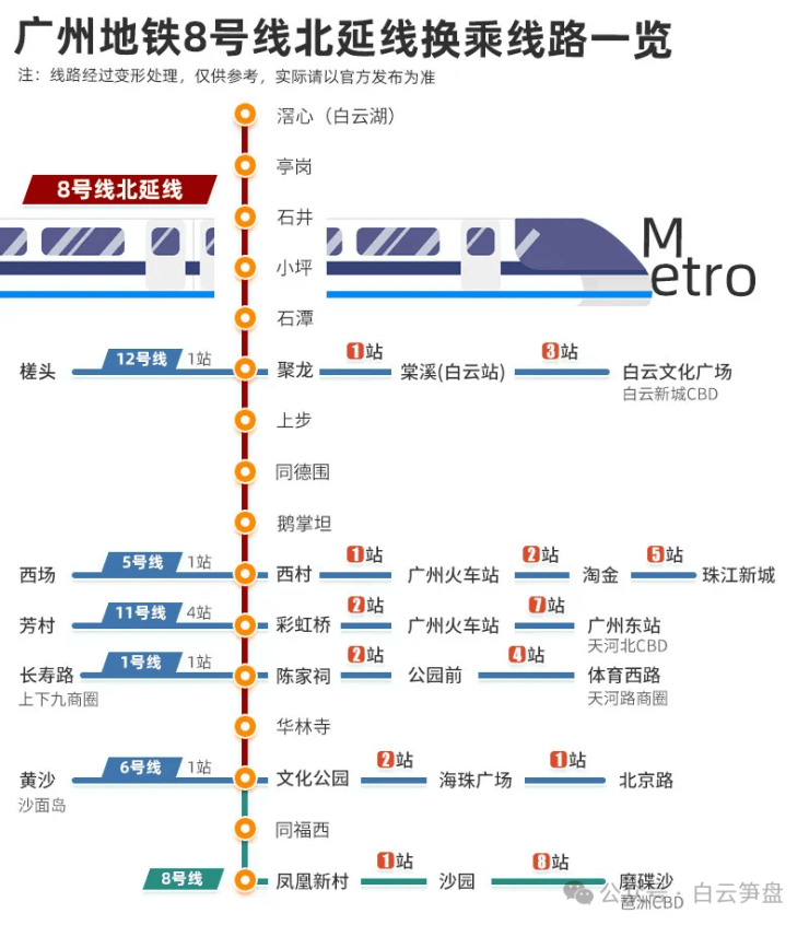 另外随着去年底广州白云站的开通,作为广州目前最大的交通枢纽站,串联全国各地,白云湖板块的交通越发便利。品实·云湖花城业主乘坐家门口的8号线,只需3站即可直达广州白云站(地铁石潭站),未来白云站有七条地铁线路汇集中轴换乘,交通将更加便捷。