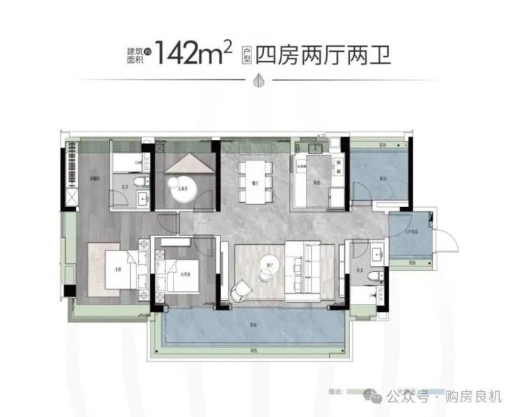 【户型面积】建面约125-142㎡四房两厅两卫/214-319㎡大平层