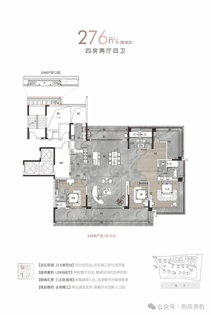 白云首个珠江大平层,125-142㎡南向江景4房,214-319㎡大平层,超高使用率,江景豪宅,市场罕有