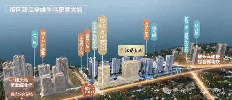 华为研发中心已经交付开园,未来将是华为全国科研人员的唯一研究中心,将有5000高新人才进驻,未来通过一带三产吸引更多上下游的高新客户人才聚居。待产业落地后,湾区新岸将实现约600亿生产总值,预计占据全区30%。