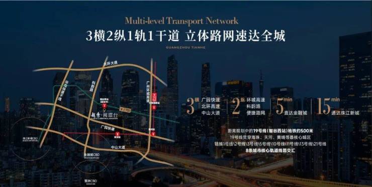 北环高速+广园快速+中山大道/环城高速+科韵路3横2纵主干道