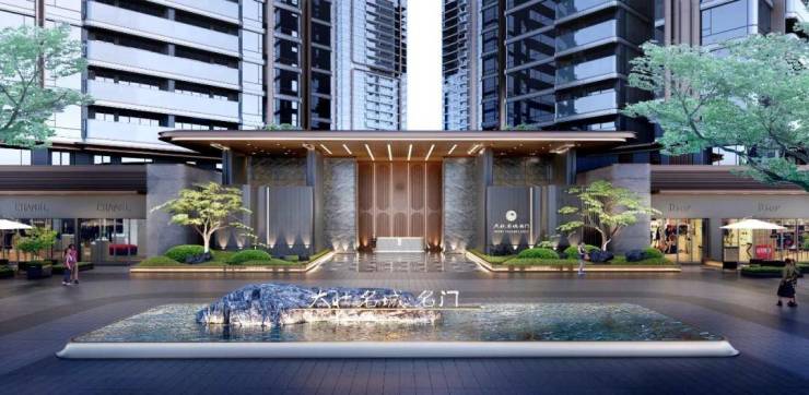 区别于一期的高大门楼、超大中国风景墙、层层递进的台阶,二期精心设计了三道归家入口,以及中轴迎宾景观,归家仪式感拉满: